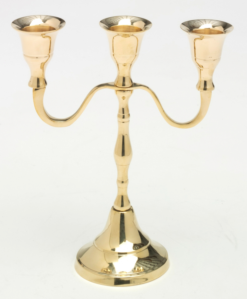 wysokość: 18 cm, materiał: mosiądz. Nadaje się do świec o średnicy 2 - 2,5 cm