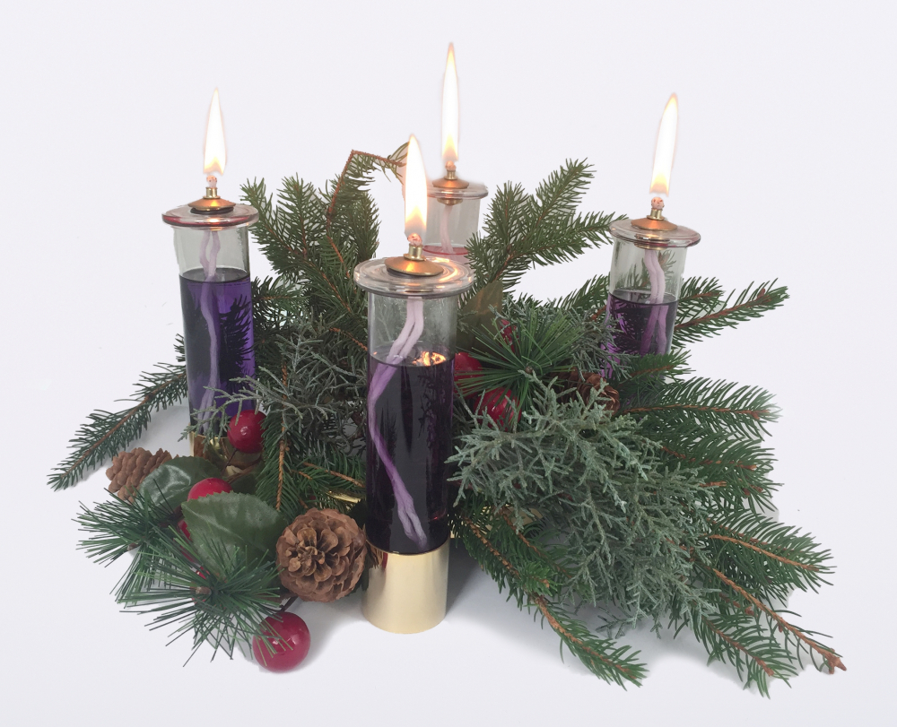 średnica: 20 cm, materiał: mosiądz złocony, wypełnienie świecy: płynny wosk. W zestawie znajdują się świece (3 fioletowe i 1 różowa).
