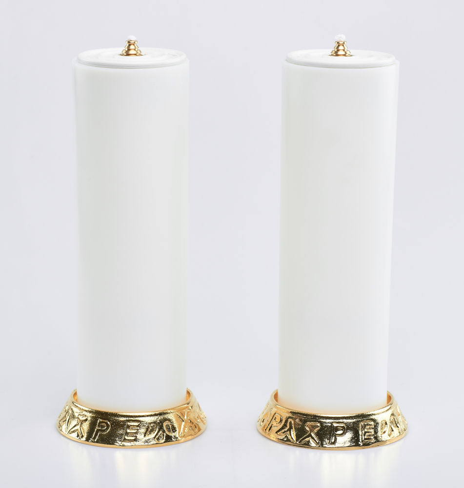 wysokość: 25 cm (świeca), średnica: 8 cm (świeca), 10 cm (podstawa), wypełnienie: olej do lamp.