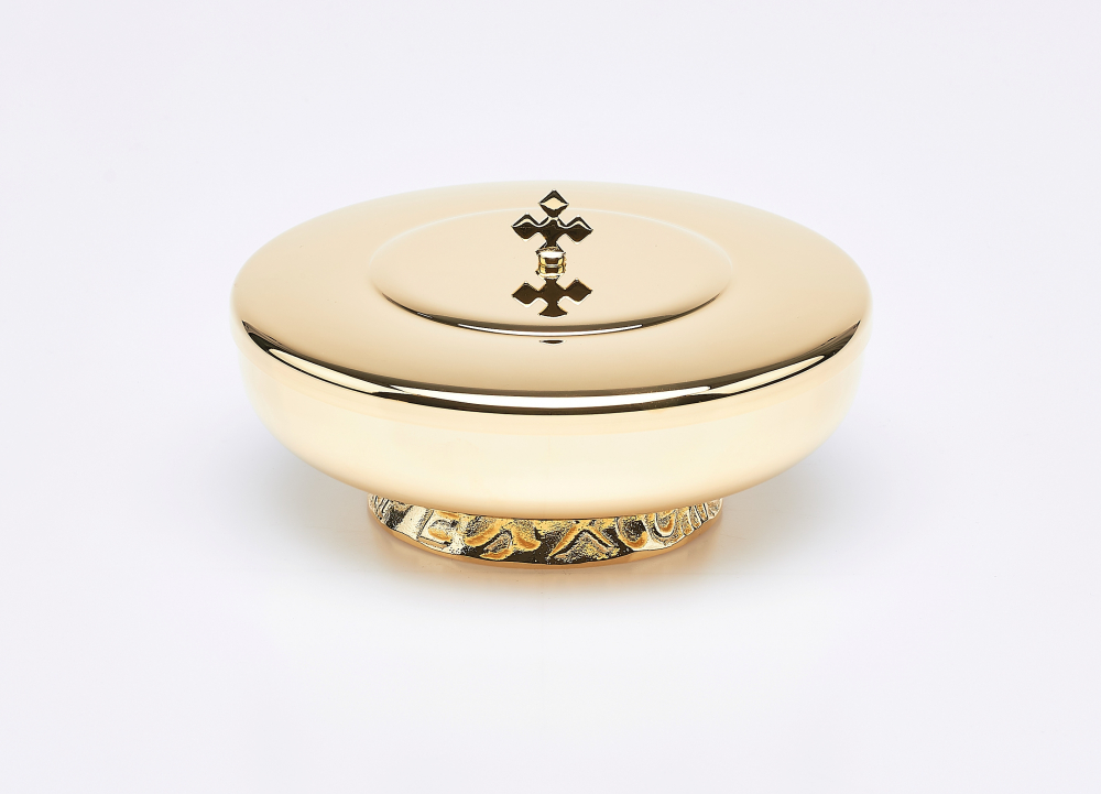 z podstawą i pokrywką, materiał: pozłacany