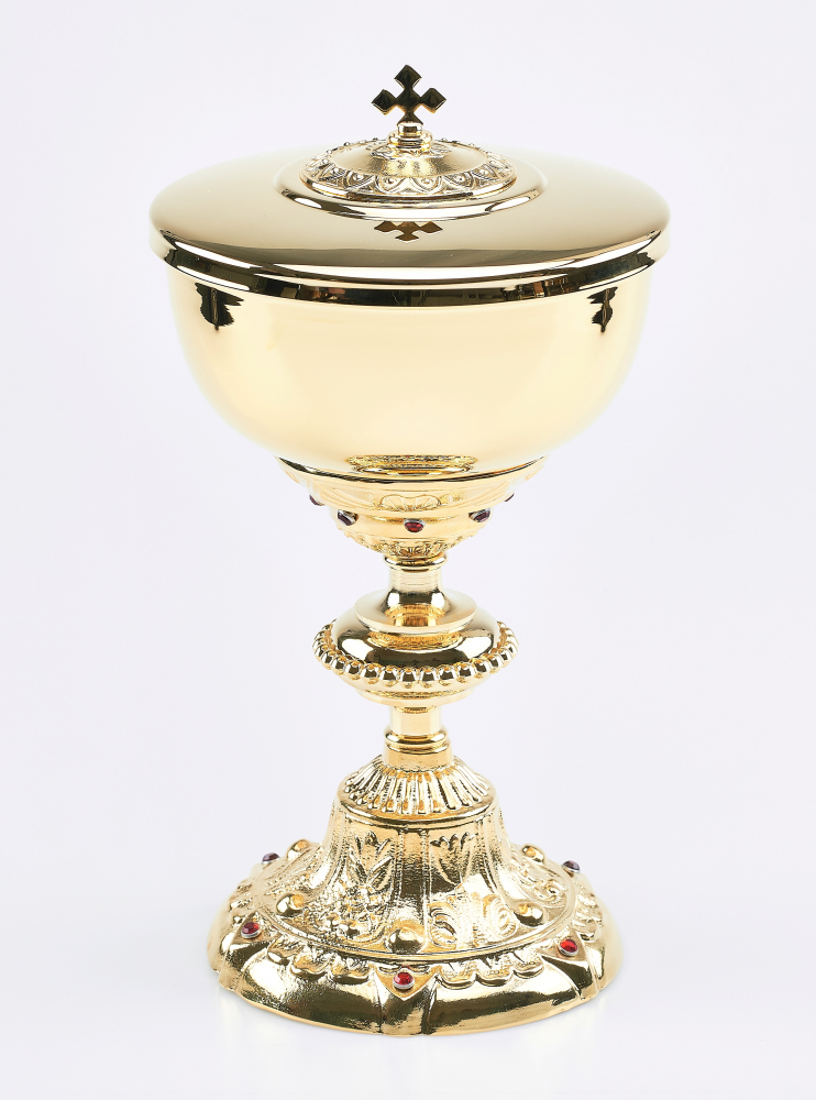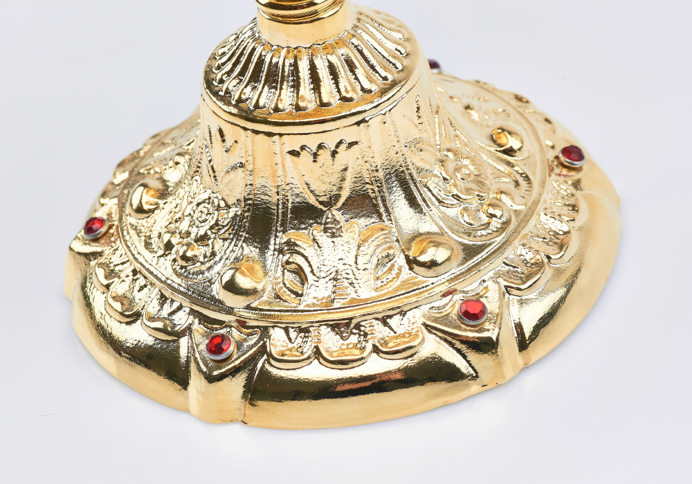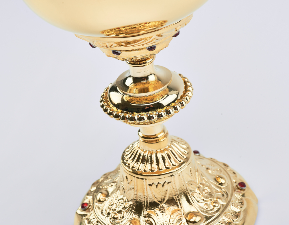 materiał: złocony, zawiera osadzone kamienie rubinowe