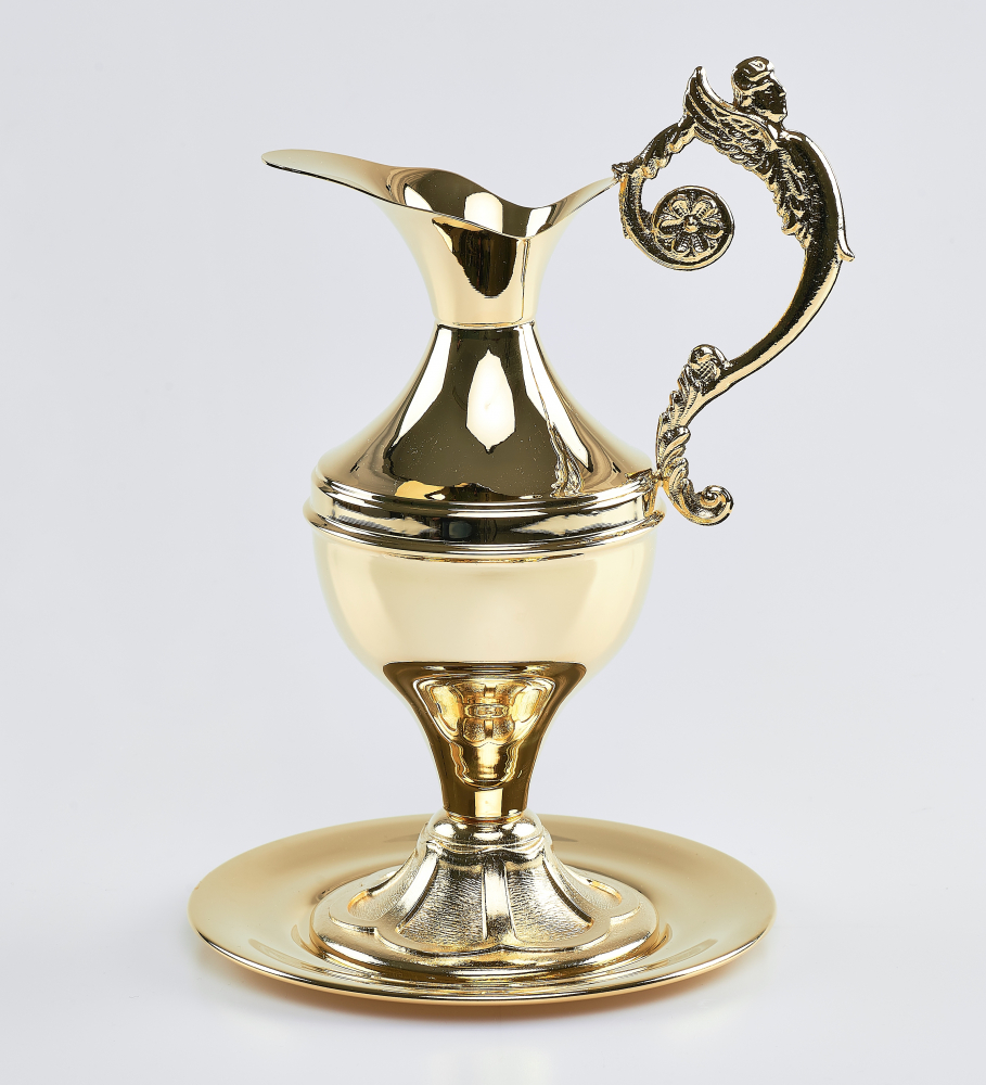 wysokość (wraz z tacką): 23 cm, pozłacana