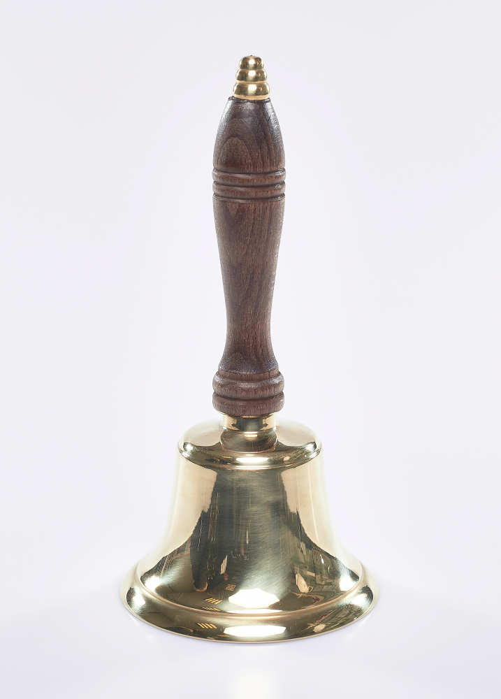 wysokość: 21 cm, średnica: 10 cm, materiał: mosiądz, uchwyt drewniany