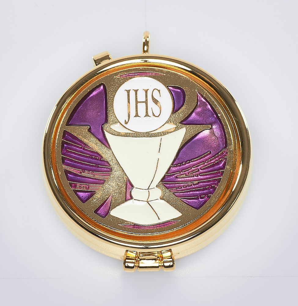 materiał: złocenie, kolorowy medal wykonany jest z niklu. Z motywem kielicha.