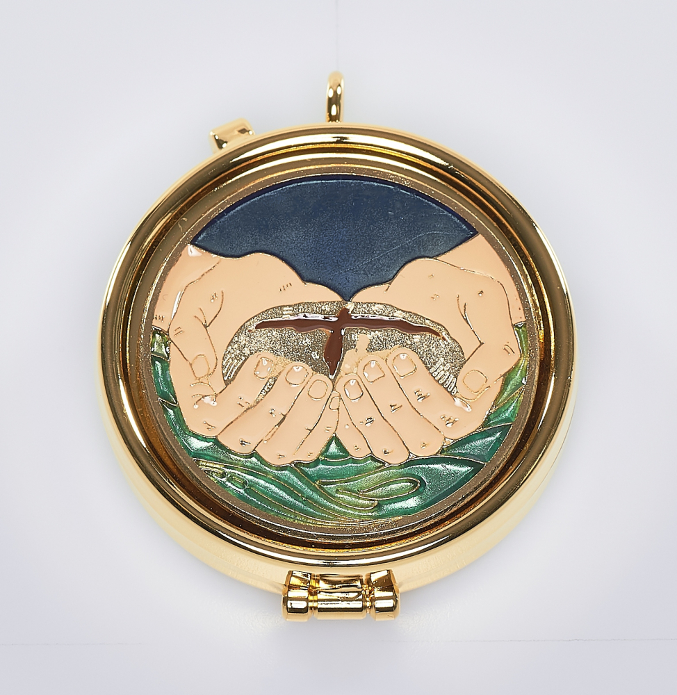 materiał: złocenie, kolorowy medal wykonany jest z niklu. Z motywem chleba w dłoniach.