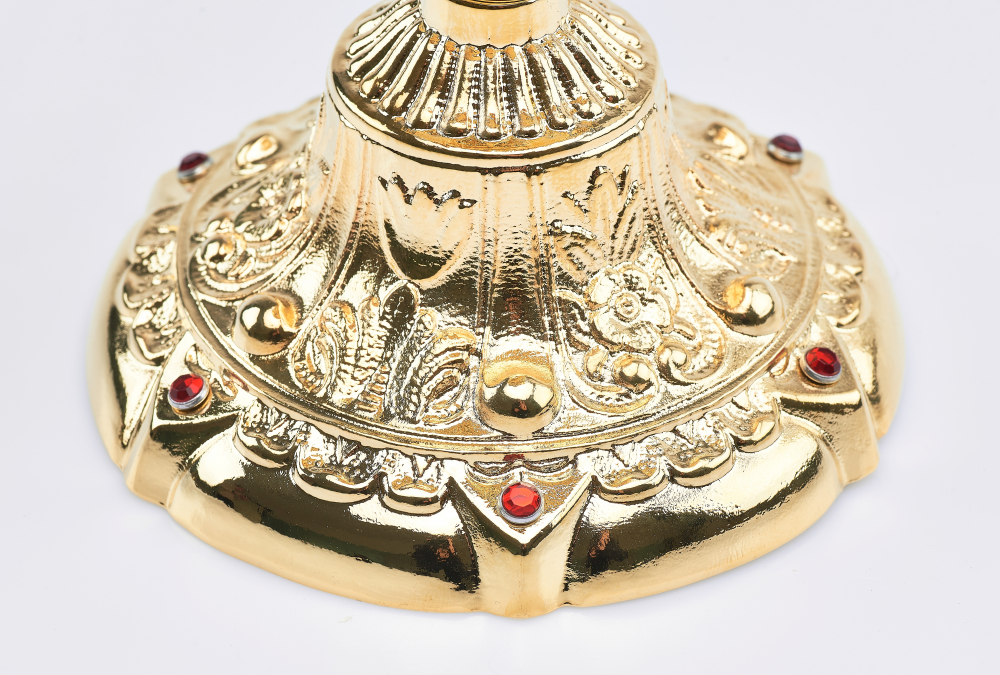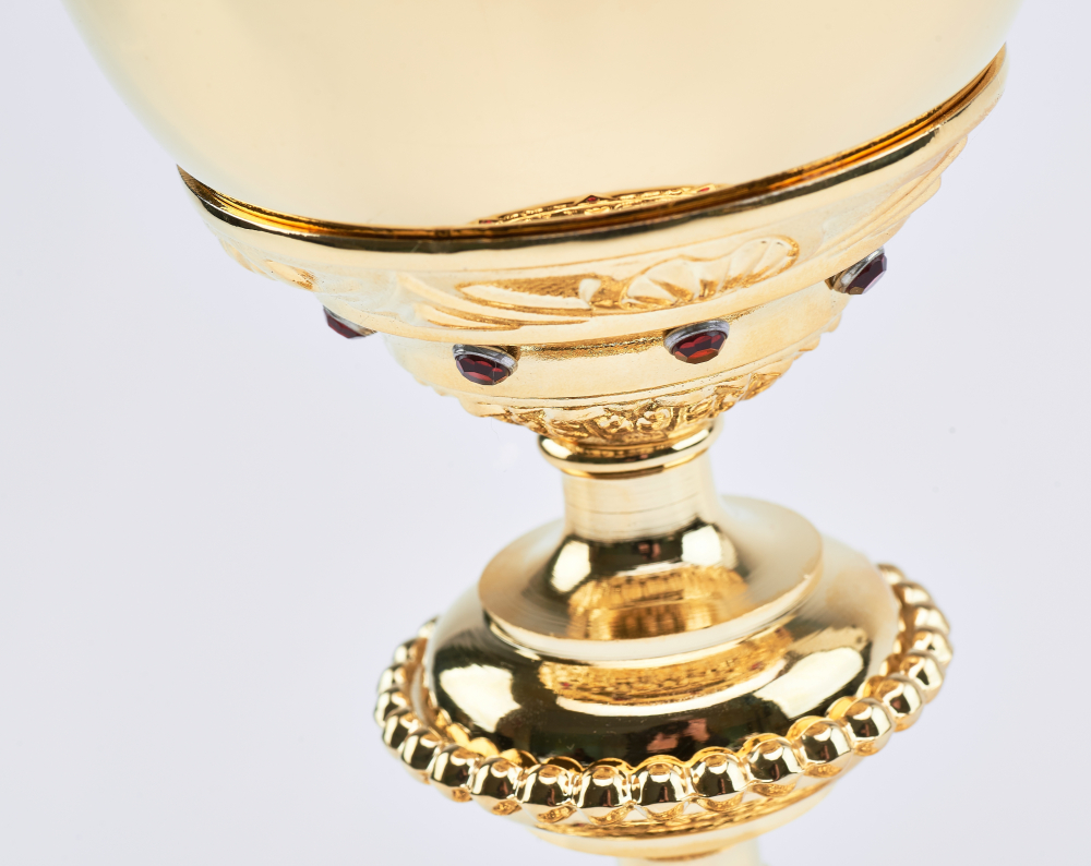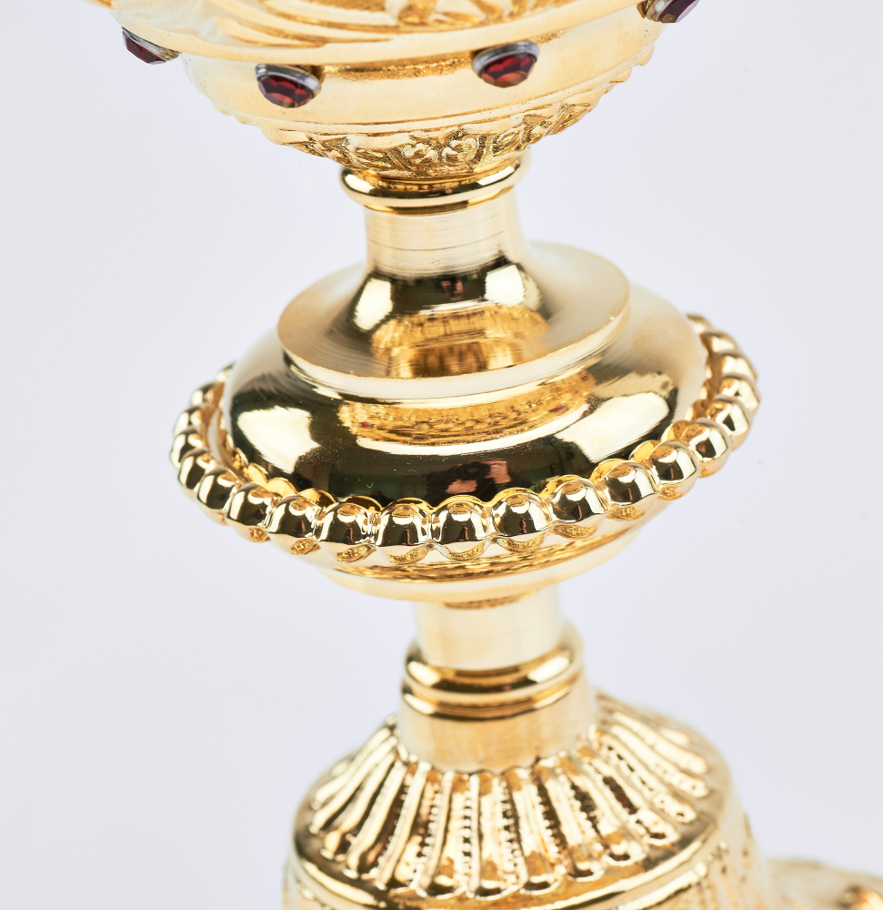 materiał: złocony, zawiera osadzone kamienie rubinowe