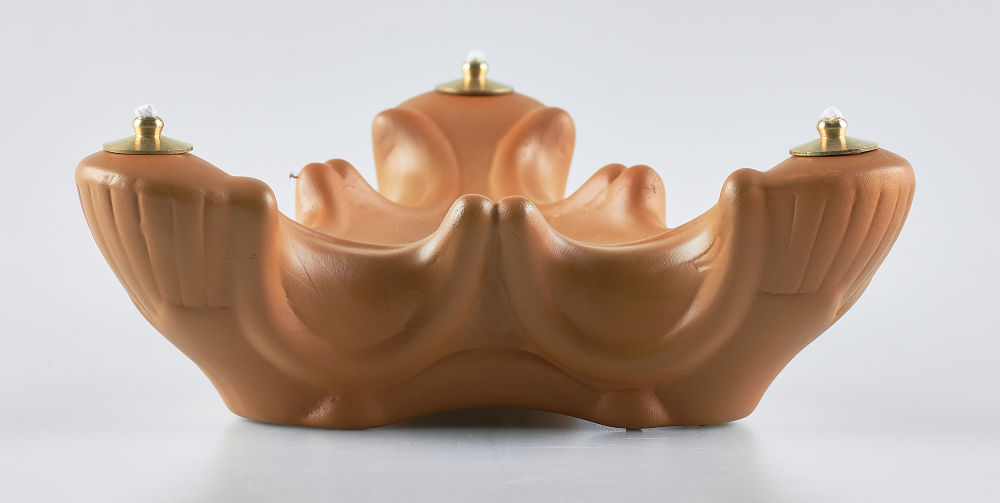 szerokość: 20 cm, materiał: porcelana, kolor terakoty, wypełnienie: olej lampowy