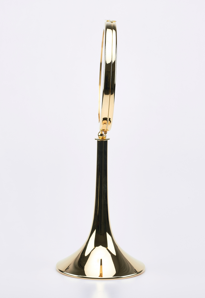 wysokość: 40 cm, średnica na hostię: 16 cm, materiał: mosiądz