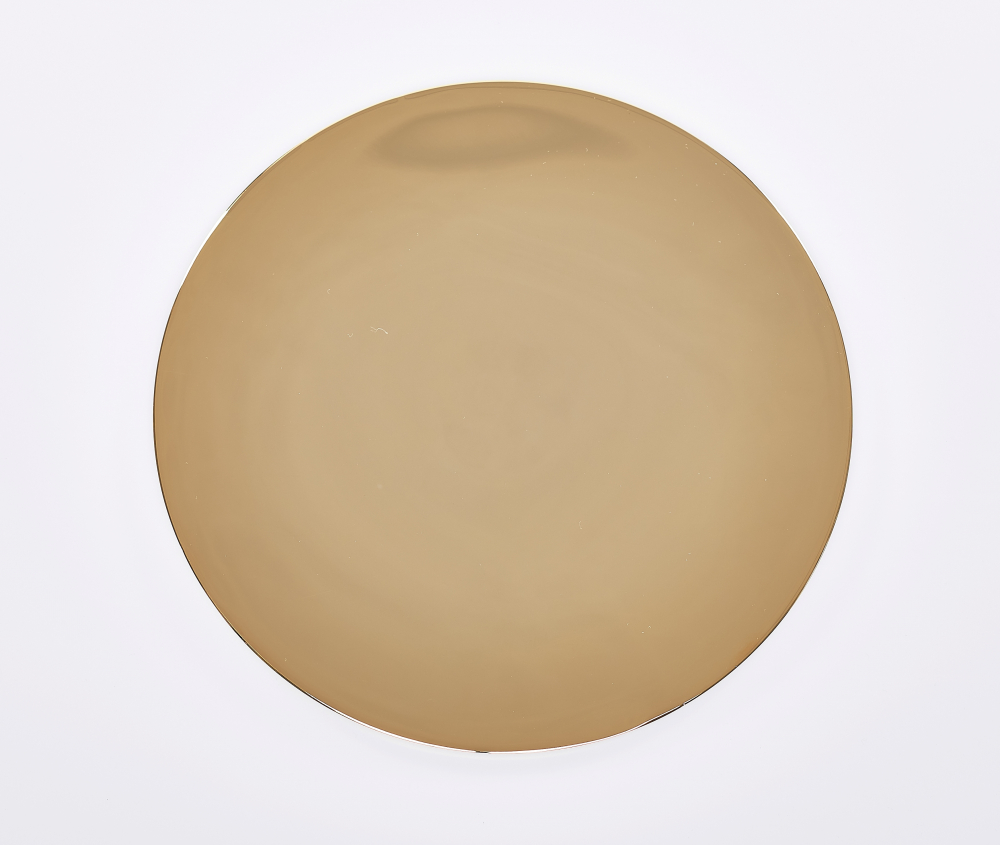 średnica: 25 cm, materiał: mosiądz złocony, grubość 1,2 mm