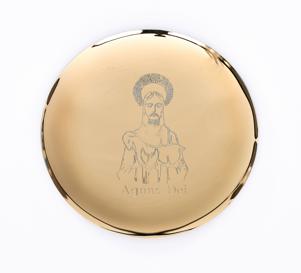 średnica: 14 cm, z ozdobnym grawerunkiem, materiał: złocony
