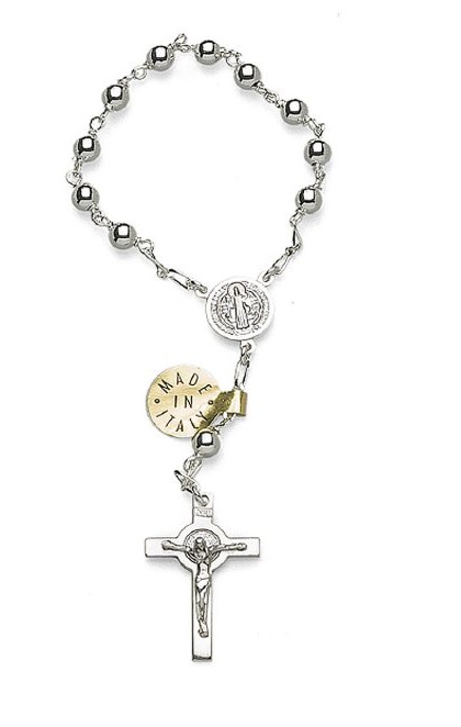 Pierścień różańcowy, srebrny, Św. Benedykt