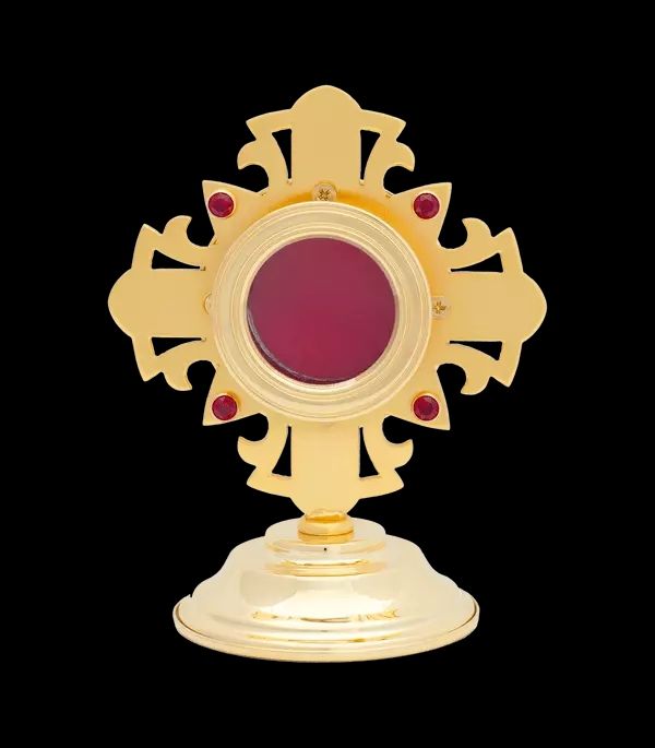 materiał: mosiądz, złocony, zdobiony rubinami