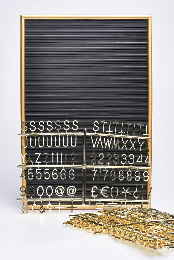 Tablica zawiera litery, cyfry i symbole pozwalające na ułożenie dowolnego tekstu.