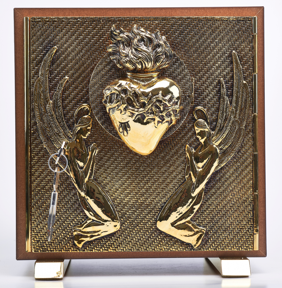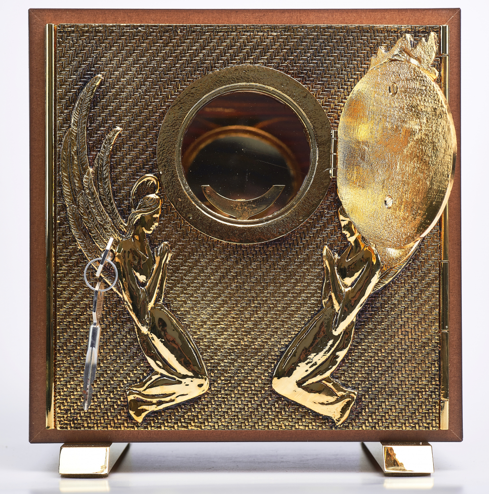 Otwory są pokryte 24-karatowym złotem. Tabernakulum dostępne jest w różnych opcjach kolorystycznych.