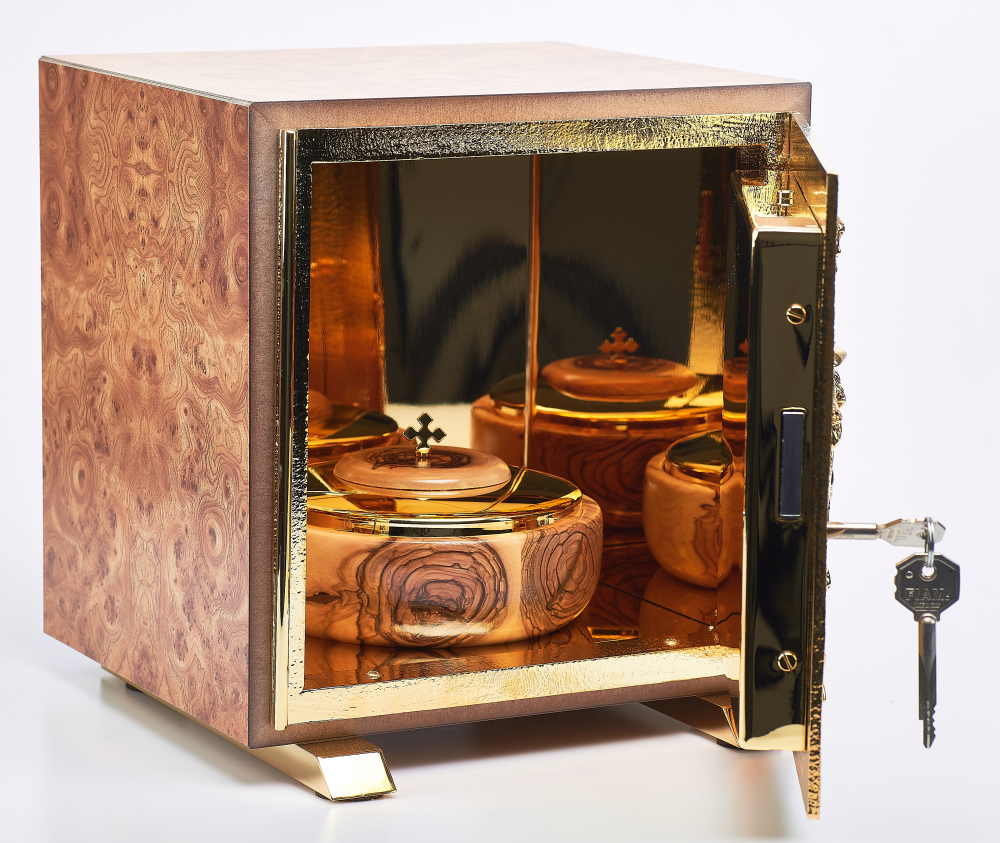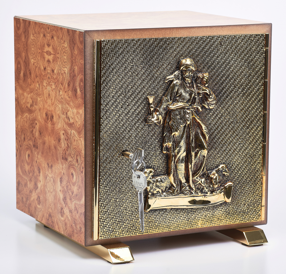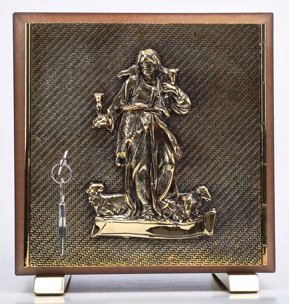 Z dekoracją Dobrego Pasterza. Tabernakulum dostępne jest w różnych opcjach kolorystycznych.