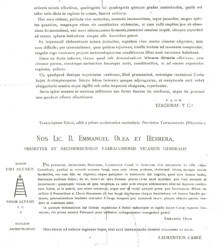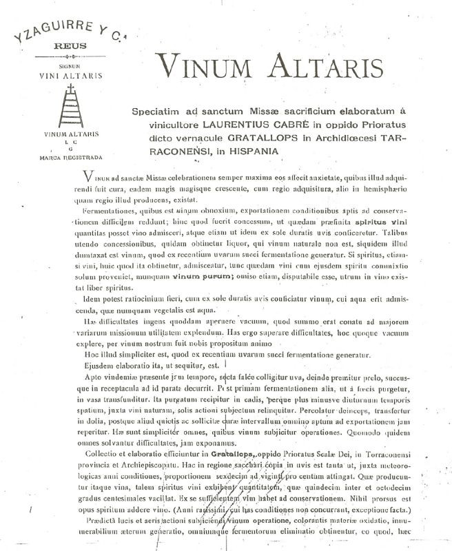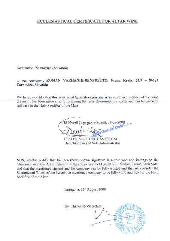 Zawartość alkoholu: 15% Kolor: Pomarańczowobrązowy z żółtym połyskiem Smak: Naturalnie słodki, podobny do aromatu winogron Maccabean Okres dojrzewania: Wino jest pozostawiane w beczkach o pojemności 5000 - 10 000 litrów na okres o różnej długości, podczas którego wino rozwija się i nabiera szczególnego smaku i aromatu. Wino spełnia wszystkie warunki niezbędne do odprawienia Mszy Świętej.