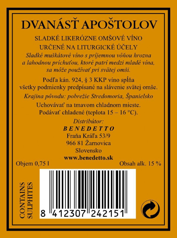 Pojemność: 0,75 lKolor: Złocisto-pomarańczowyWino mszalne o smaku likieru, słodkie, złociste.