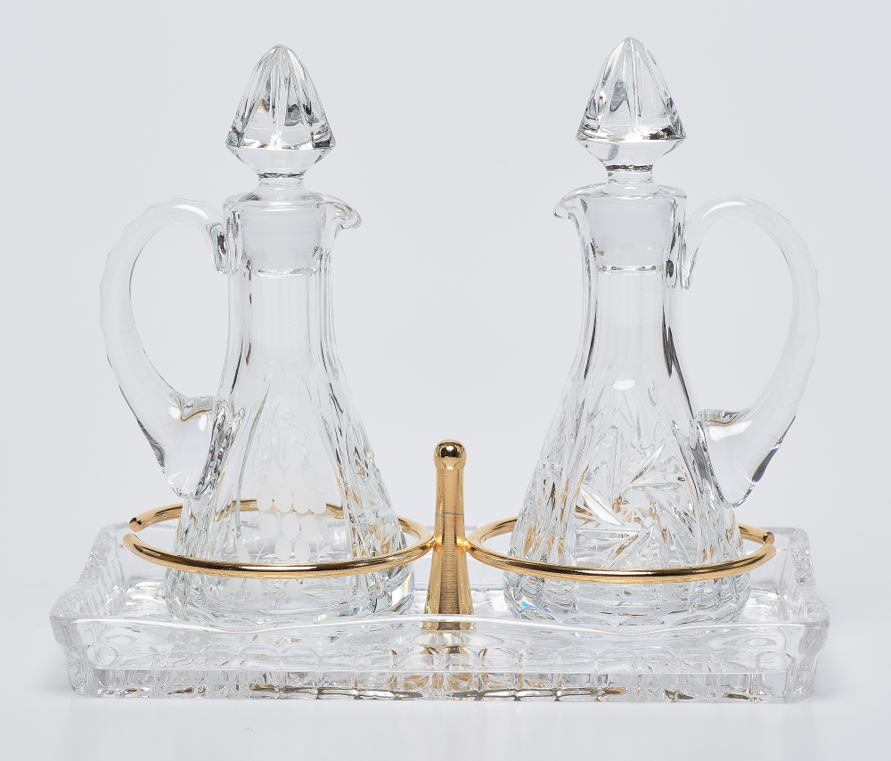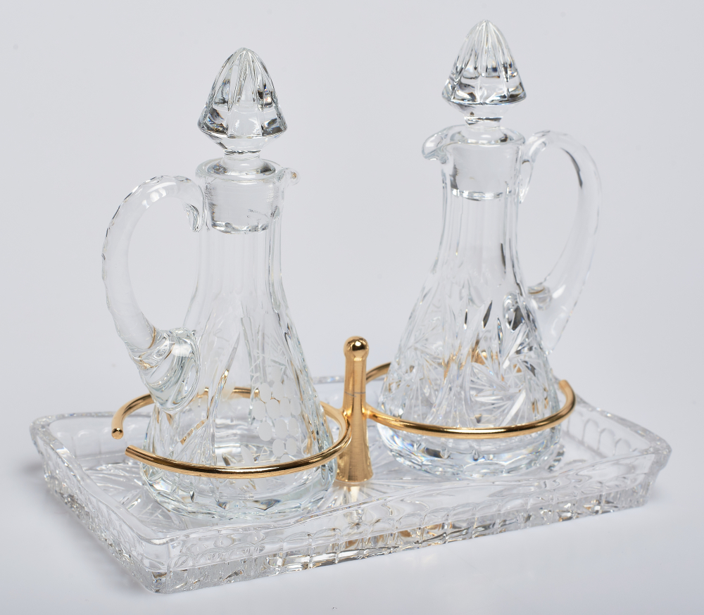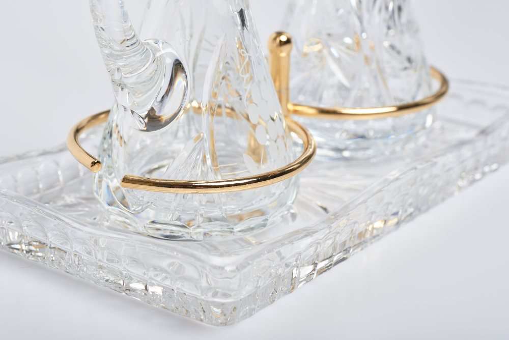 materiał: kryształ, obręcze wykonane z mosiądzu złoconego