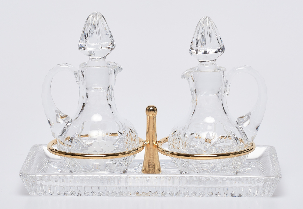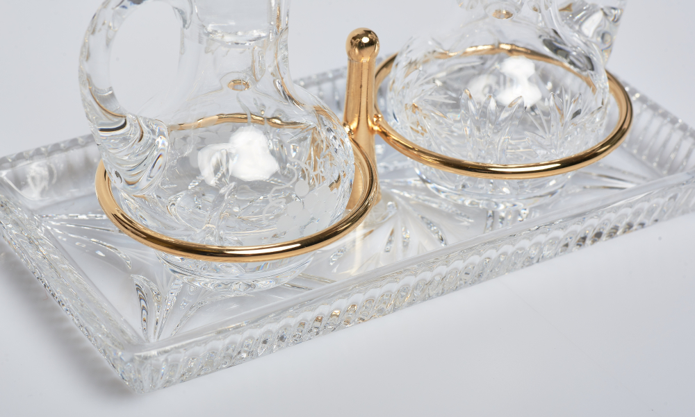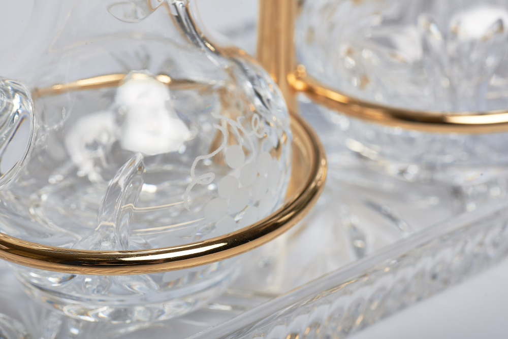 materiał: kryształ, obręcze wykonane z mosiądzu złoconego